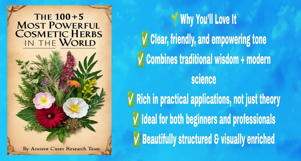 “The 100+5 Most Powerful Cosmetic Herbs in the World” is a groundbreaking digital guide to the richest, most effective botanical allies for your skin and hair. From ancient traditions to modern applications, this beautifully written and visually curated eBook reconnects you with the true essence of beauty: nature.